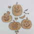 Pakketje houten elementen om pompoentjes te maken, je kan er 4 dubbelzijdige gezichtjes mee maken. De hoogste pompoen is 11 cm. Dit zijn leuke pakketjes om tijdens een feestje te knutselen of mee te geven als uitdeelzakje. In de klas knutselen is ook een leuk idee voor als het herfst is. Een setje wordt geleverd met een penseeltje en 3 verfkleurtjes in oranje, zwart en groen.