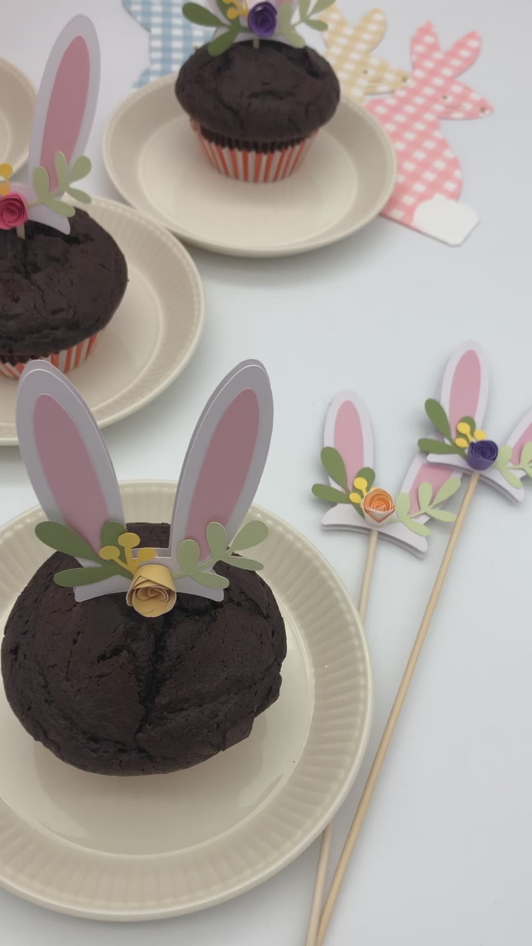 Deze schattige konijnenoortjes steken eigenwijs de lucht in. Ze zijn een vrolijke en mooie aankleding van de Paastafel. Op elke Topper zitten ook blaadjes en een roosje in 6 verschillende kleuren. In een pakketje zitten 6 Cupcake Toppers.